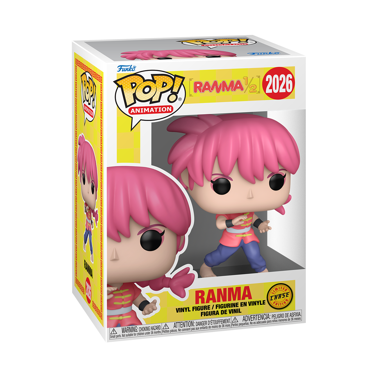 Switch things up in your POP! Animation set with the female chase of POP! Ranma! Form a perfect union between this martial artist and your collection by welcoming her to your Ranma 1/2 lineup. Vinyl figure is approximately 4.5 in (11.4 cm) tall.
